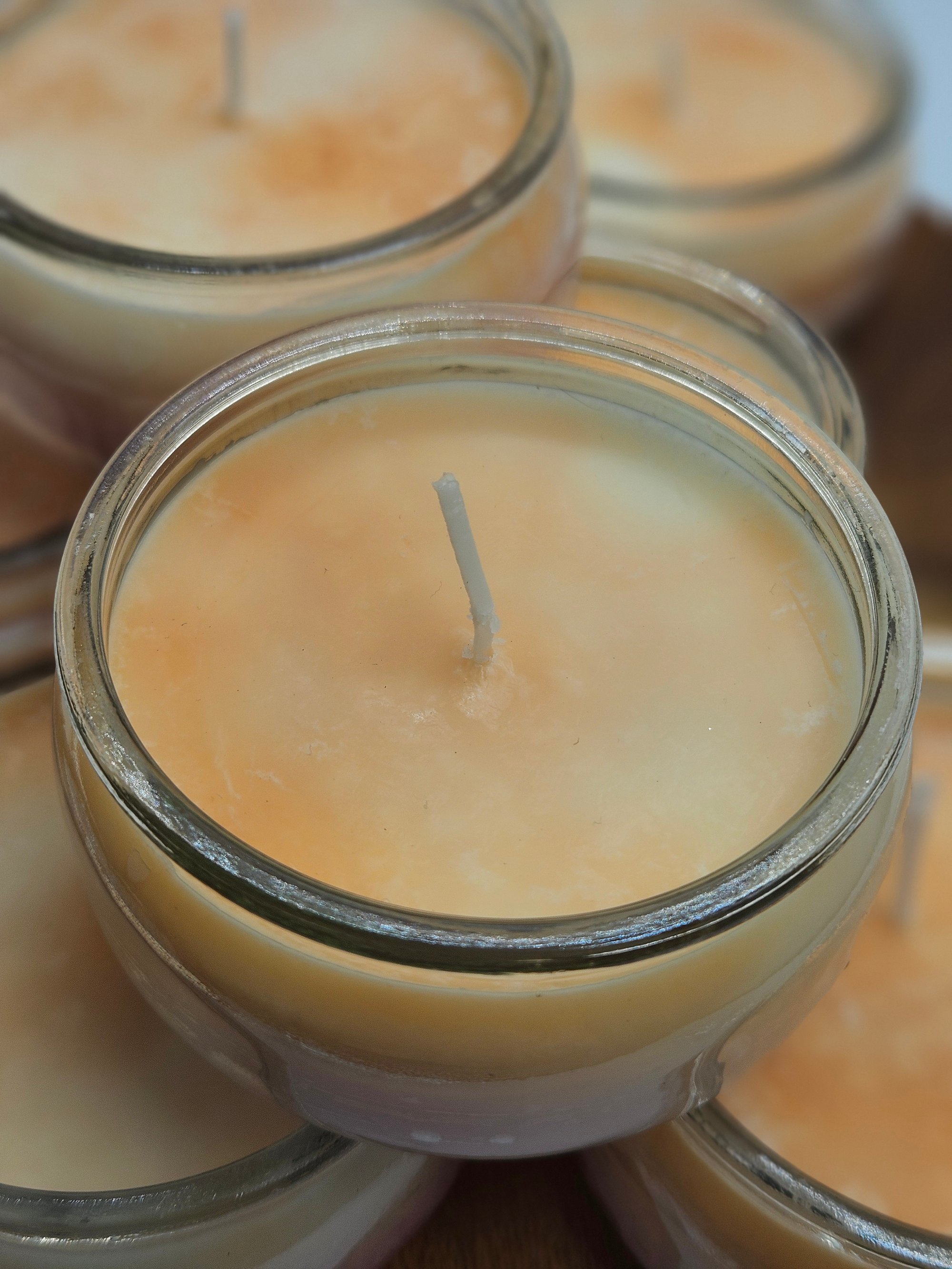 the vessel for this cute petite style candle is a recycled jar that has been cleaned & sanitized for your favorite new candle!