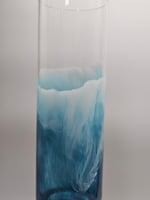 this upcycled stem vase has been given new life with a gorgeous ocean inspired resin look.. this vase stands 12.5 inches high, including the stem base.