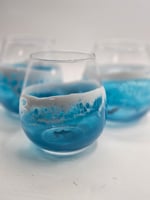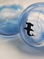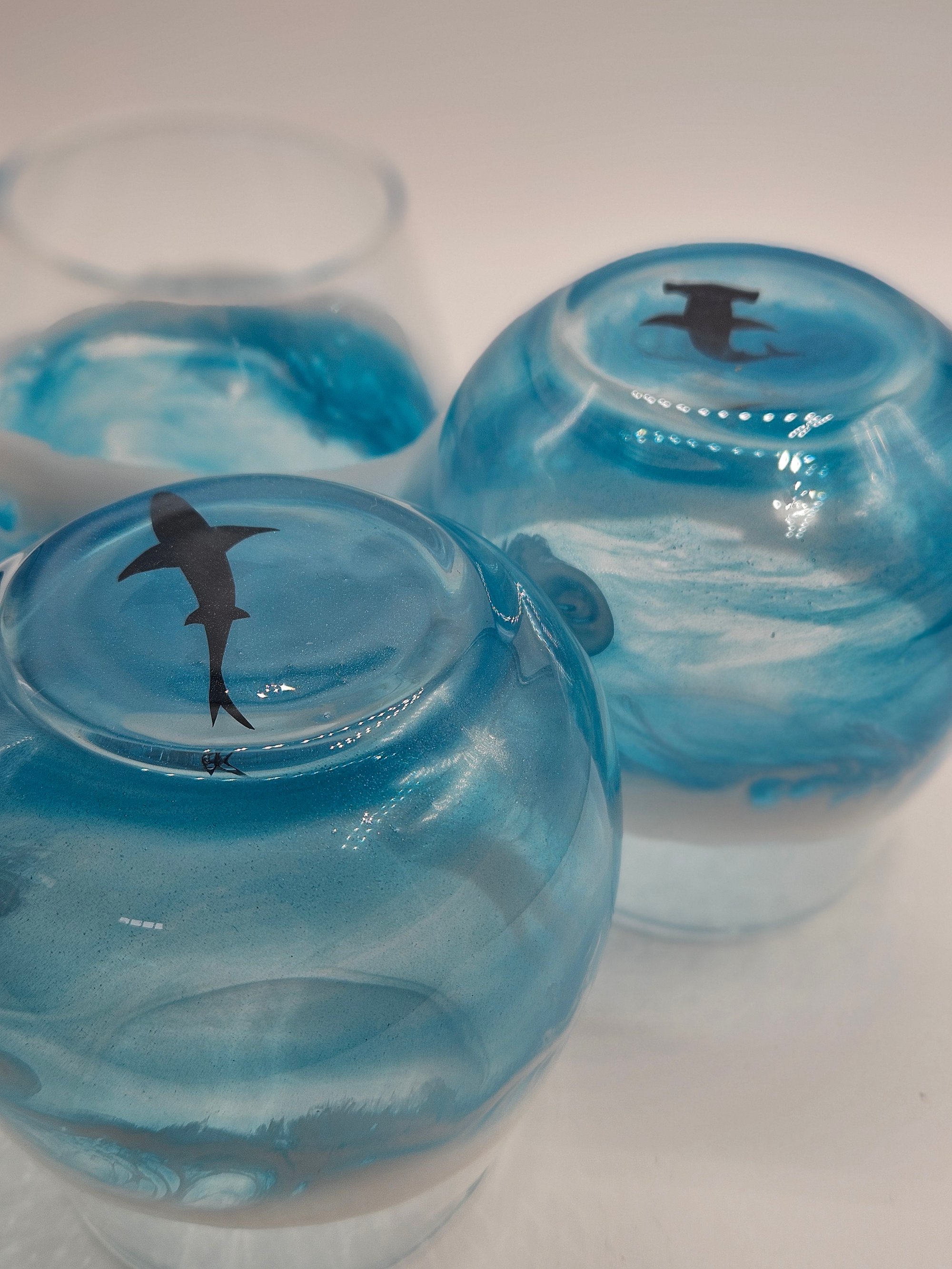ocean inspired resin design with swimming style sharks on bottom of glass. shark, colors and swirls will be different for each glass!